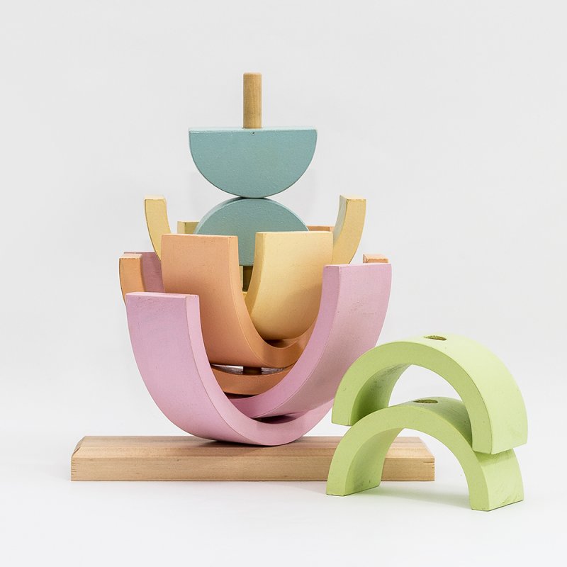 Su madera, imperfecta y natural, les da información sensorial muy valiosa. Sus piezas les ayudan a diferenciar formas y colores. Manipulándolo ganan destreza y coordinación. A través de él van comprendiendo conceptos complejos como el equilibrio, la simetría y la resistencia. Les abre la puerta de par en par al juego simbólico, a construir escenarios e imitar situaciones de la vida real.